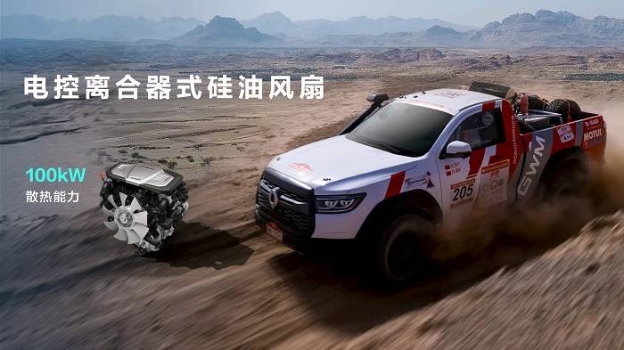 散热能力,代表着车辆的上限。V6火炮还配备电控离合器式硅油风扇,散热功率达到100kW,完美适配各种极限玩沙、高强度赛事、大角度爬坡等硬核越野需求。