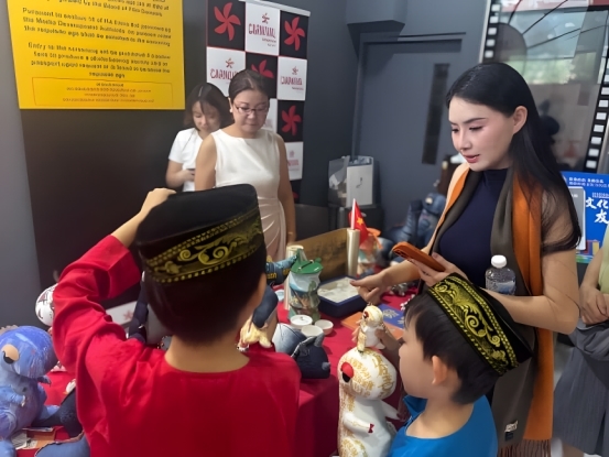 活动期间,展览现场人气汇聚,反响热烈。以“一带一路”为灵感创作的真丝丝巾,融合文化寓意与匠心工艺,成为中新友谊的动人见证;充满奇趣的恐龙主题文创产品,则引领观众特别是孩子们穿越亿万年时光,感受远古生命的魅力,现场气氛热烈而温馨。